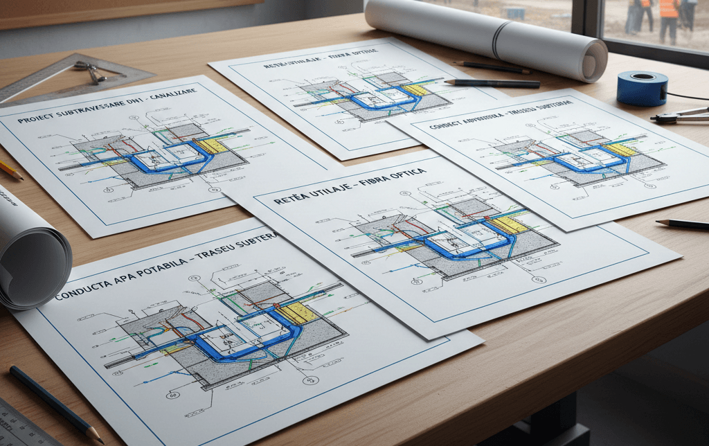 Realizăm proiecte pentru traversarea căilor ferate și drumurilor cu rețele subterane — apă, canalizare, gaze, electricitate, telecom.